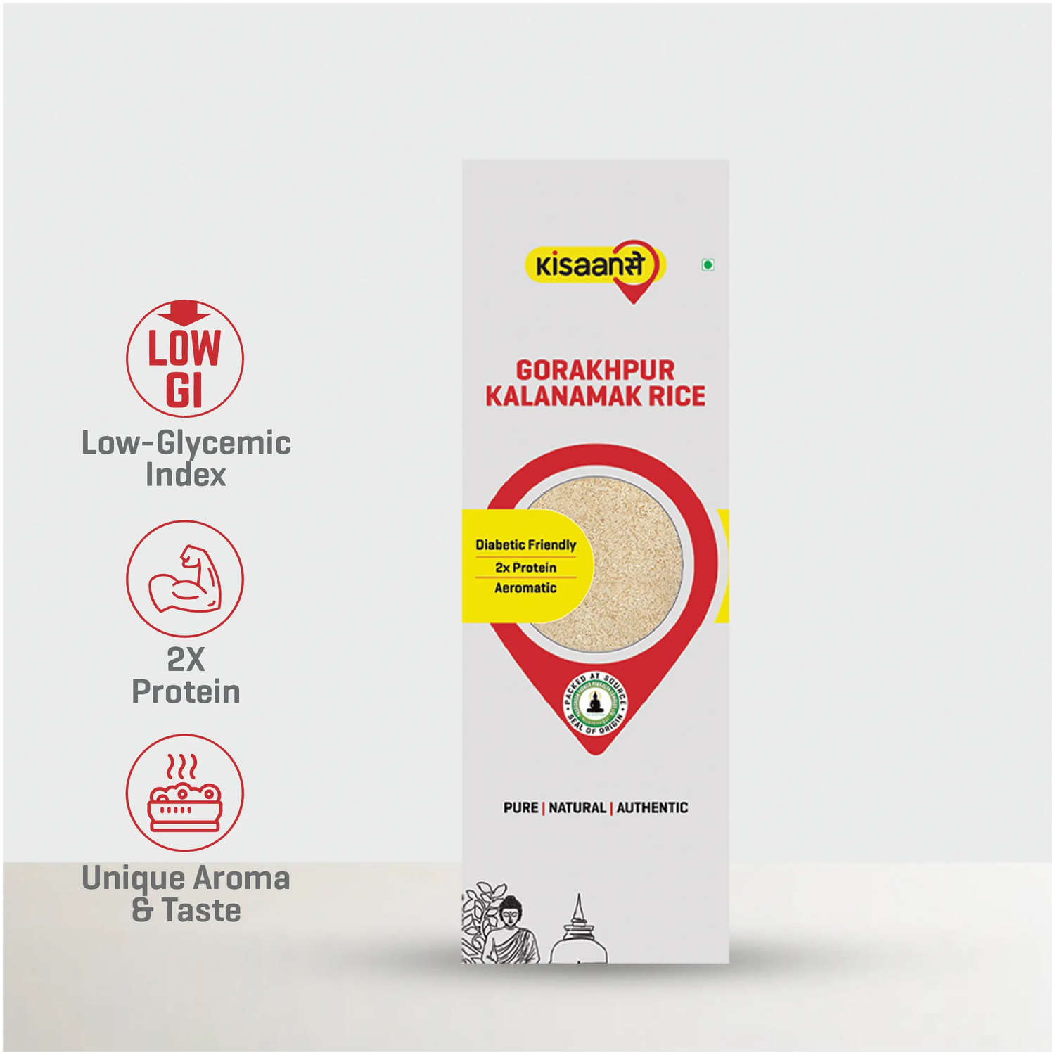 Kalanamak Rice is an exquisite indigenous scented Rice variety, which derives its name from Kala (attributed to the black colour of the paddy) & Namak (attributed to the saline soil where this paddy best grows). When Lord Budha visited Kapilavastu for the first time after attaining nirvana, he gave this rice as Prasad to the villagers. This wonder rice is a Diabetic Friendly rice, given its low Glycemic Index (Low GI).