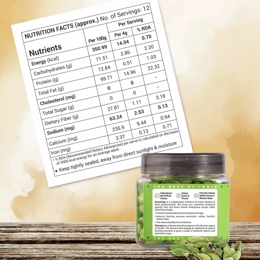 Distinctive Flavor & Aroma: KisaanSay Idukki Cardamom is celebrated for its rich and distinctive flavor profile. It enhances the taste of a variety of dishes and beverages, adding a unique and aromatic touch.