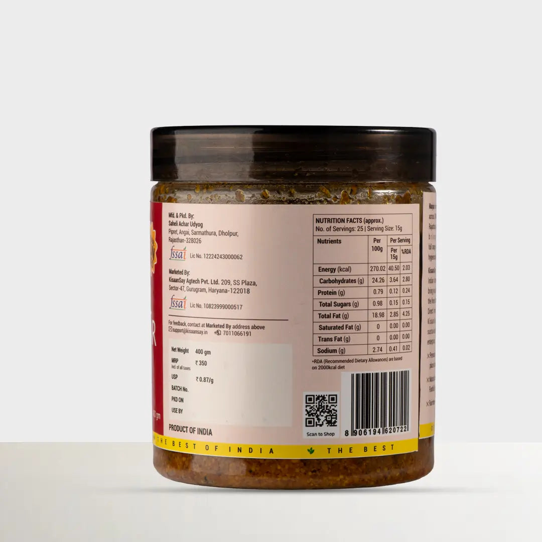 Naturally sun-dried vegetables, no vinegar or preservatives, each jar offers you the cherished flavours of the traditional recipes of Rajasthan.